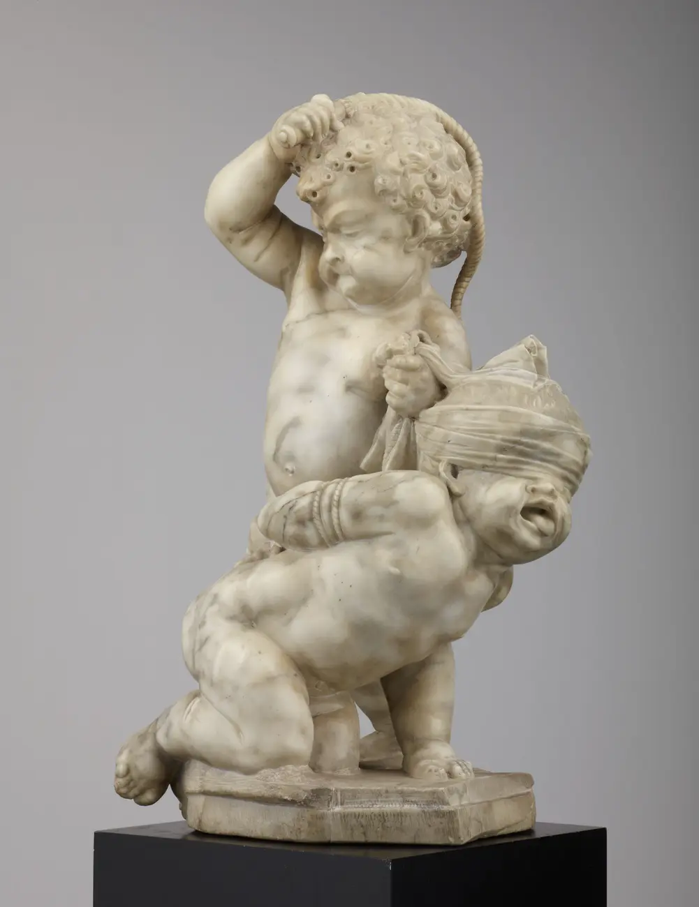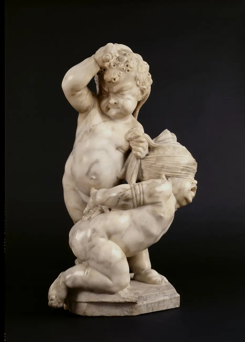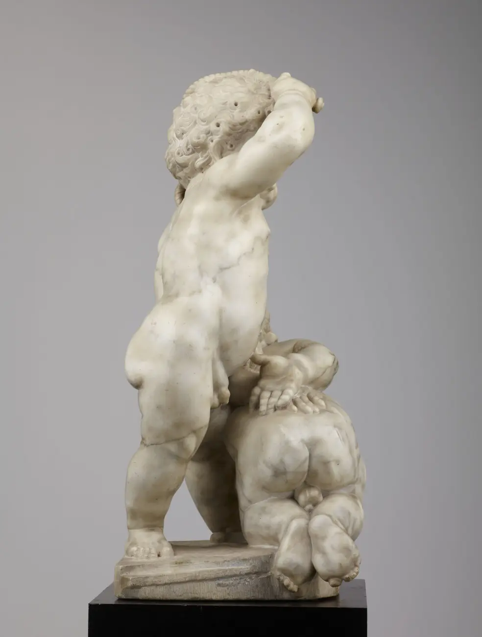 Im Ausstellungssaal kann man durch einen Blick aus den Fenstern auch in den Zwingerhof sehen. Etliche der Skulpturen, die diesen schmücken, wurde von Heermann und von seinem großer Konkurrent Balthasar Permoser (1651–1732) ausgeführt, wie etwa die Statuen am Wall-Pavillon direkt gegenüber, was zu spannenden Vergleichen einlädt. Im Mittelpunkt der mit Tageslicht durchfluteten Präsentation steht ein Hauptwerk des Meisters, die Marmorgruppe Saturn und Ops. Die zwei Puttengruppen zeigen in höchst vergnüglicher Weise den Kampf der irdischen mit der himmlischen Liebe und auch in den allegorischen Büsten „Herbst“ und „Winter“ geht es um die virtuose Schilderung von Gegensätzen in der Gestalt eines fröhlichen Bacchus und eines mürrisch frierenden Greises.